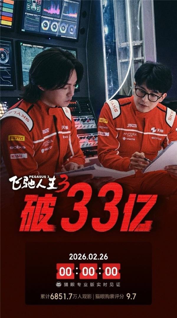 IT之家 2 月 26 日消息配资平台提供咨询,据猫眼专业版数据,由韩寒执导、沈腾领衔主演的《飞驰人生 3》于 2 月 17 日上映,目前配资平台提供咨询该电影累计票房正式突破 33 亿大关,以断层优势拿下 2026 年春节档票房冠军,同时成功跻身中国影史票房总榜 TOP20。